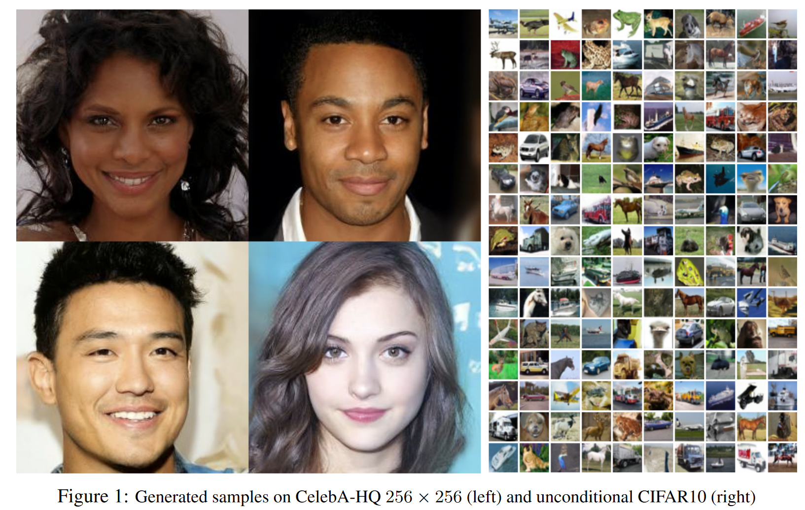 최근 다양한 종류의 심층 생성 모델들이 여러 데이터 양식에서 고품질의 샘플을 생성하는 데 성공했다. 특히, GANs, 자기회귀 모델(autoregressive models), flows, 그리고 변분 오토인코더(VAEs)는 인상적인 이미지와 오디오 샘플을 합성했다. 또한, GANs에 필적하는 이미지를 만들어내는 에너지 기반 모델링과 스코어 매칭 분야에서도 현저한 발전이 있었다.