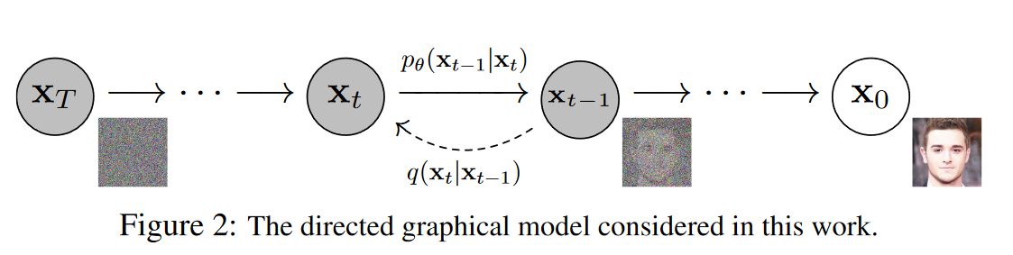 이처럼 순방향 과정이 고정되어 있기 때문에, 모델은 이 과정을 되돌려 노이즈로부터 데이터를 생성하는 역과정을 학습하는 데 집중할 수 있다.