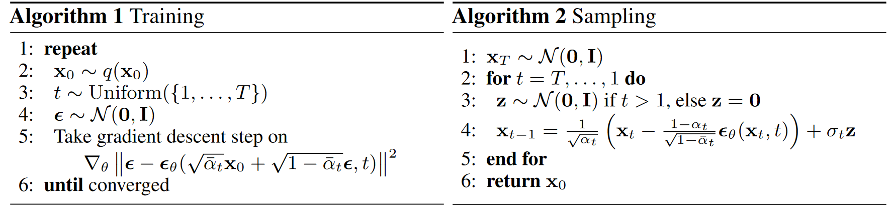 여기서 $t$는 $\{1, \dots, T\}$ 사이에서 균등하게 샘플링된다.