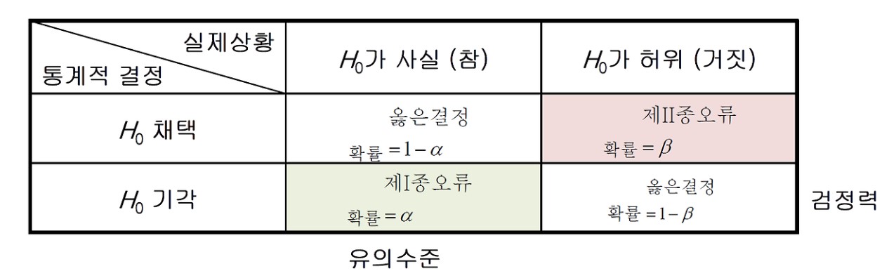 1) 검정력의 정의